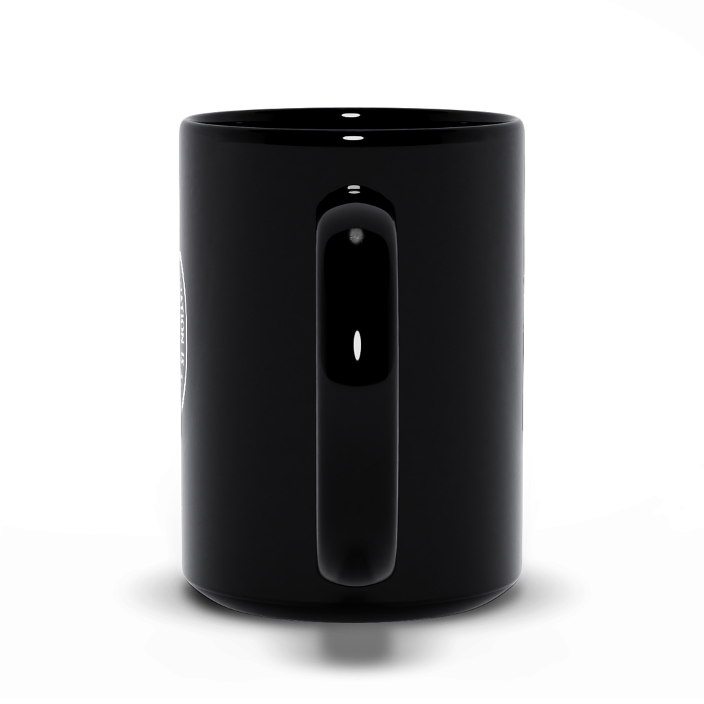 These black mugs are made from quality ceramics. Hand wash to ensure the print doesn't fade.